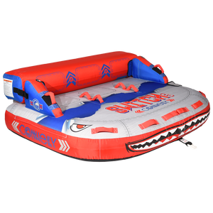 Get ready for endless tubing action with the SWITCH 3 towable tube! Designed to thrill, this versatile tube comfortably seats three riders and features a clever convertible design that transforms from a cozy couch to a deck tube in seconds—perfect for switching up the adventure. Crafted with heavy-duty materials, plush neoprene, and eye-catching sublimated graphics, it's made to withstand the wildest rides in style. Padded handles and knuckle guards keep everyone secure and comfortable, while the quick-connect system and Boston valve ensure hassle-free setup. Plus, the included peel-and-stick repair kit has you covered for non-stop aquatic fun!