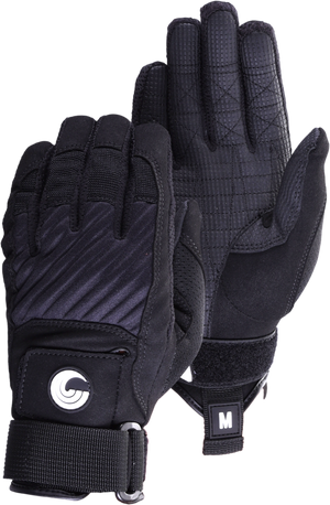 Connelly's Tournament waterski glove features a double-layered Amara palm for a soft grip, with reinforced thumb panels for durability and flexibility. Raised silicone texturing enhances grip, while embossed breathable neoprene protects knuckles and promotes airflow. Reinforced pre-curved fingers improve fit and dexterity. Adjustable straps ensure a secure, customizable fit for comfort and performance.