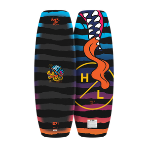 Shaun designed this deck with the groms in mind and assures them a great ride! Countless hours on the water have led Shaun and Nelson to create this shape and the feedback has been mind-blowing. The Murray Jr. wakeboard begins with a Subtle 3-Stage Rocker, where there is no flat spot, the rocker simply increases under foot for a colossal boost off the wake. Carrying on from past shapes, Shaun kept the Variable Edge Design and Molded Landing Feature making the board enjoyable for all ability levels. The board’s edge is rounded between the inserts, sharpening under foot and then cupped at the tip and tail delivering solid edge hold when you want it and forgiveness when you need it. Hyperlite’s Biolite 3 Core and compression molded construction keep The Murray Jr. is super light for easy spinning, flipping and full sends. Just check the latest kids competition, the Murray Jr. is on the podium.