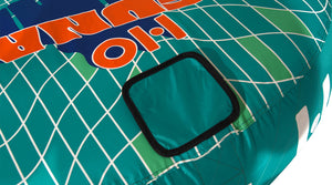 Unleash the fun on the water with the Laguna 2 Towable Tube! This 2-person tube features a new swept-wing design for superior performance and stability. The HO Quick Connect Tow Attachment System makes setup a breeze, while the 2-way Boston Valve allows for quick inflation and deflation. Constructed from heavy-duty materials, it includes nylon webbing-covered soft foam handles for a comfortable grip. With a 1-year limited warranty, you can enjoy memorable adventures with family and friends all season long!