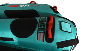 Experience solo thrills with the Tomcat Towable Tube! Designed for a single rider, this tube features an articulated design for improved maneuverability and comfort. The HO Quick Connect Tow Attachment System makes setup quick and easy, while the 2-way Boston Valve allows for fast inflation and deflation. Crafted from heavy-duty materials, it includes nylon webbing-covered soft foam handles for a secure grip. Enjoy your time on the water with confidence, backed by a 1-year limited warranty!